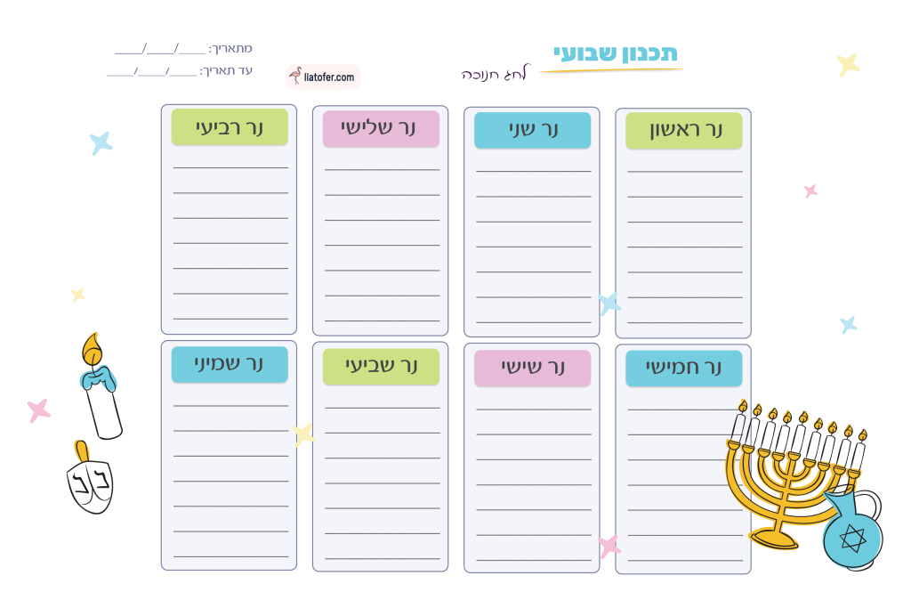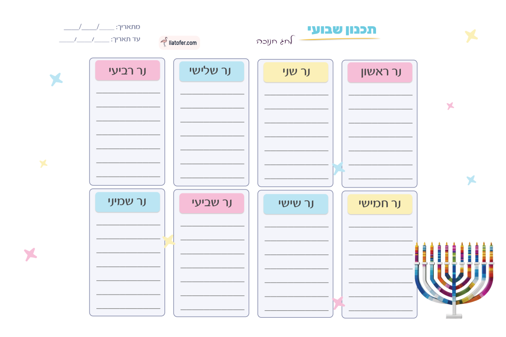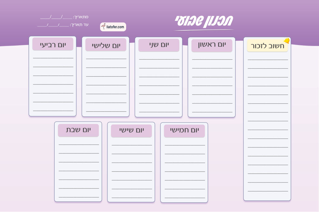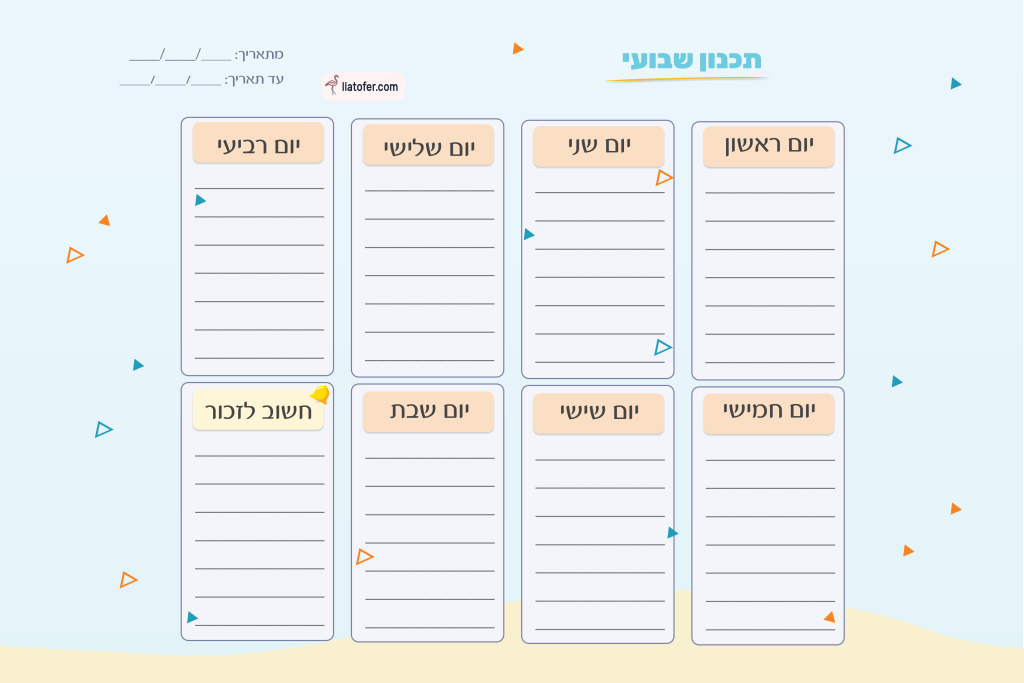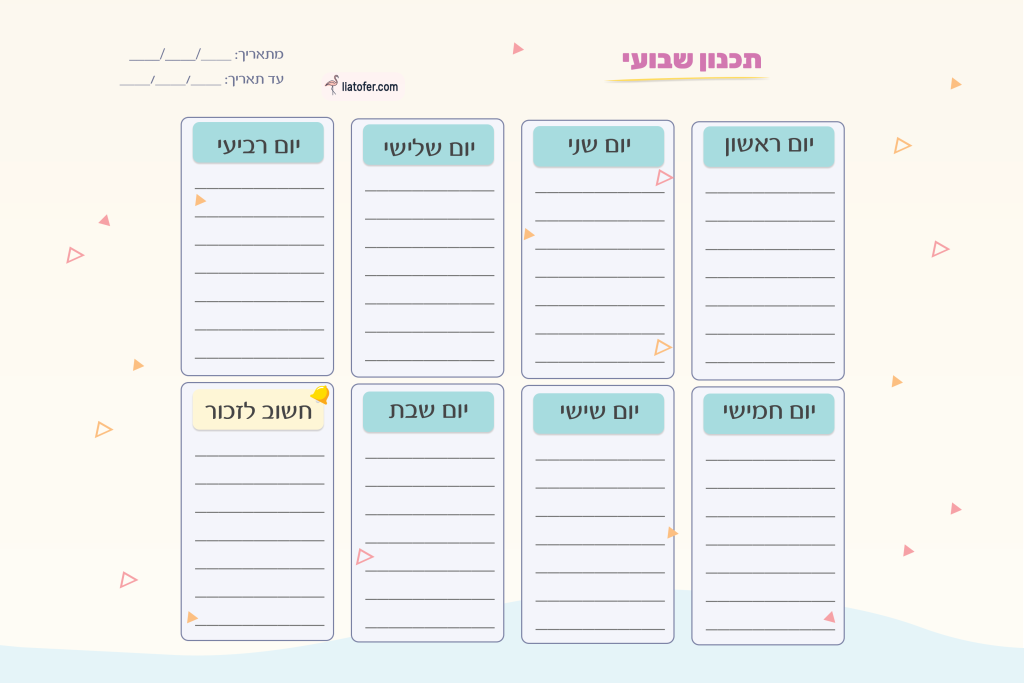 דפי פעילות, מערכות שעות ולוחות תכנון לילדים ולכיתה.