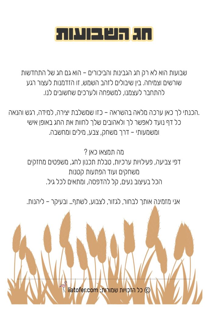 מחפשים חוברת פעילות לשבועות להדפסה שתשלב תוכן ערכי, זמן איכות ומשחקים ברוח החג?