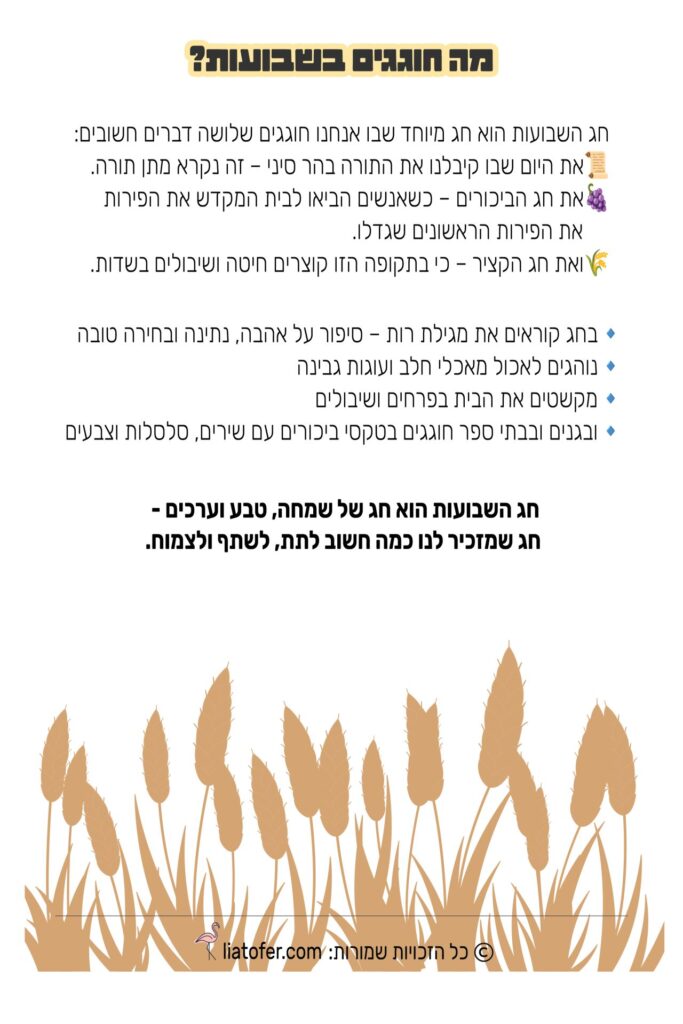 🕊️ הסבר נעים על חג השבועות – כולל ערכים של נדיבות, קציר וביכורים