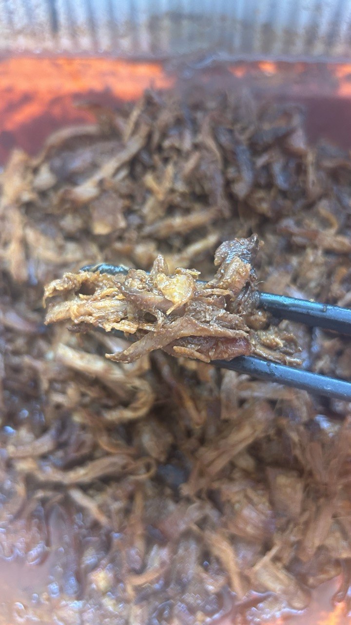 - אופים כ־4 שעות, עד שהבשר רך ומתפרק בקלות לרצועות.